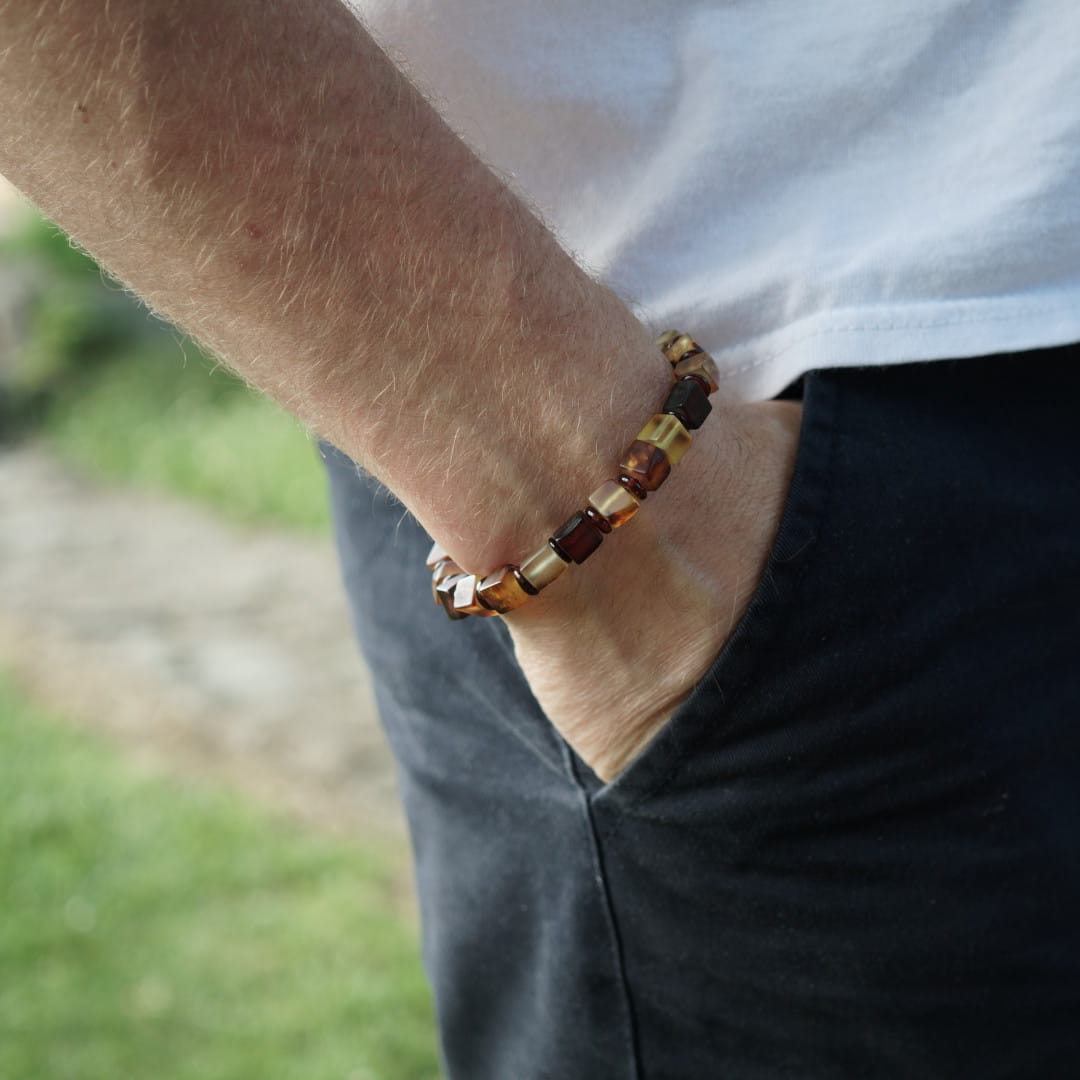Męska bransoletka z bursztynowych sześcianów 19 cm
