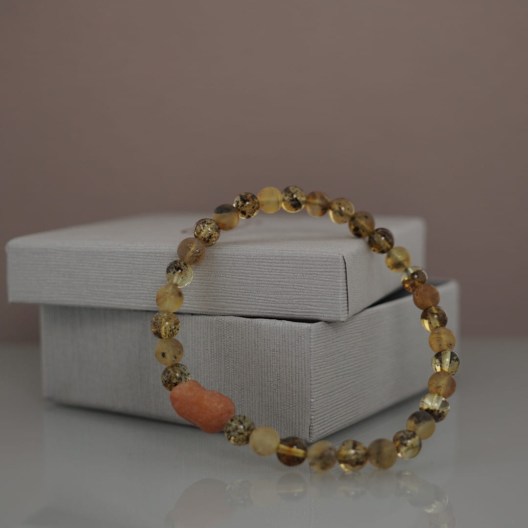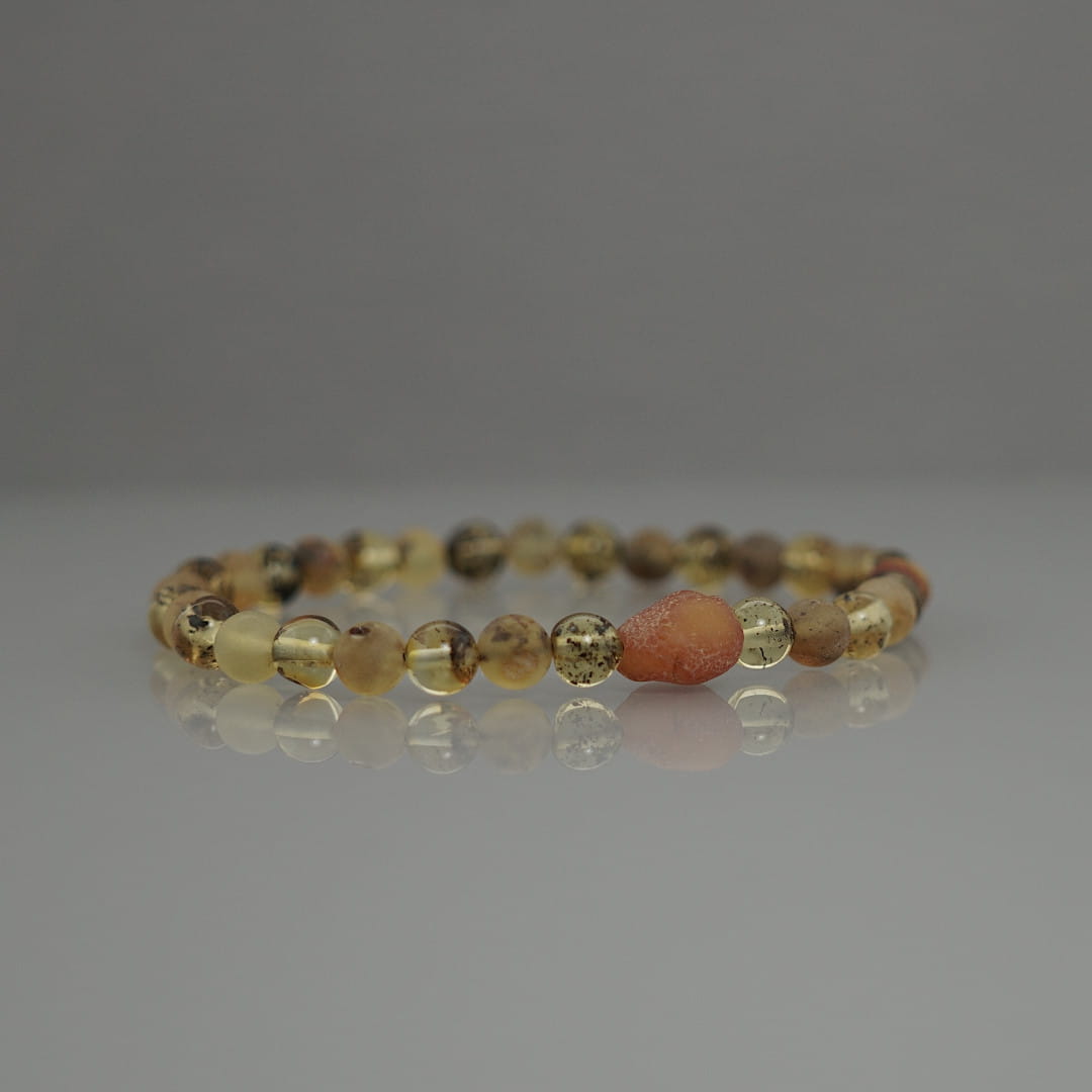 Bransoletka została wykonana z kulek naturalnego bursztynu bałtyckiego niepoddawanego żadnej obróbce termicznej.
