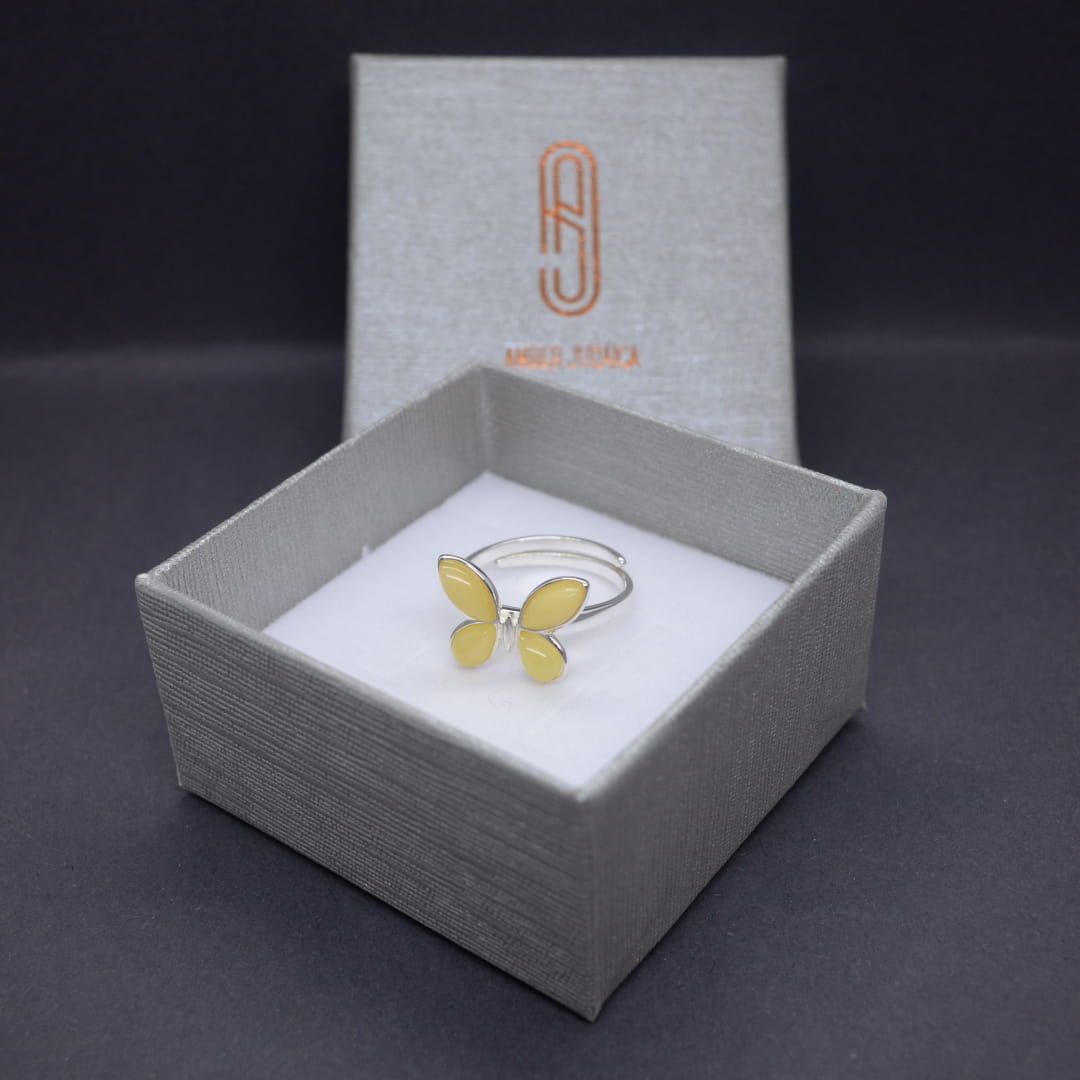 Pierścionek z bursztynem motyl