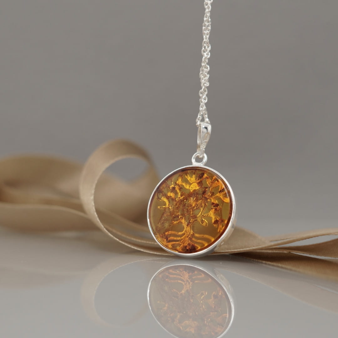 Wisiorek w kształcie koła, w które zostało wpisane Drzewo Życia. Srebrną oprawę wypełnia bursztyn bałtycki. To biżuteria dla kobiet, dla których rozwój osobisty, wiedza i mądrość życiowa stanowią jedne z najważniejszych wartości. Będzie on nie tylko piękną ozdobą, ale i talizmanem.