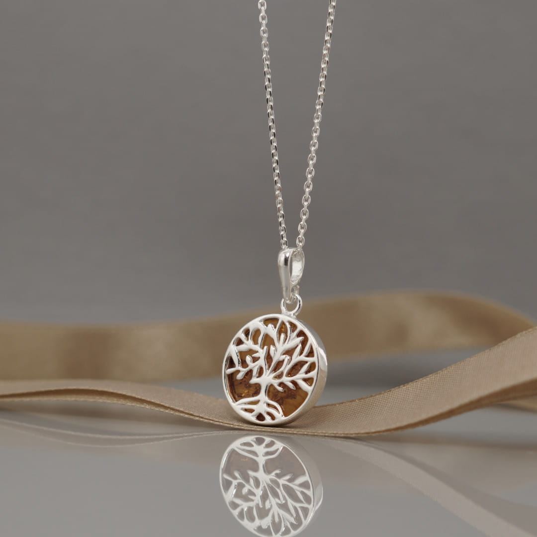 Wisiorek w kształcie koła, w które zostało wpisane Drzewo Życia. Srebrną oprawę wypełnia bursztyn bałtycki. To biżuteria dla kobiet, dla których rozwój osobisty, wiedza i mądrość życiowa stanowią jedne z najważniejszych wartości. Będzie on nie tylko piękną ozdobą, ale i talizmanem.